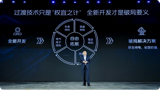 在他看来,破局关键在于从 0 到 1 的全新开发。福田启明星产品基于电驱特性打造 “智能原生” 方案,通过四大技术架构构建差异化壁垒:中央分布式驱动架构以 95.7% 的总成效率实现极致降耗;整车集成域控架构支持 L2 级辅助驾驶并可升级至 L4 级,能通过 OTA 持续迭代;智能底盘架构搭载的 FBS 超高压蓄能线控制动系统,响应速度较传统液压制动快 70%;全新人机架构以470mm一级踏步,较传统轻卡降低40%, 2120mm 超宽空间实现乘用级体验。