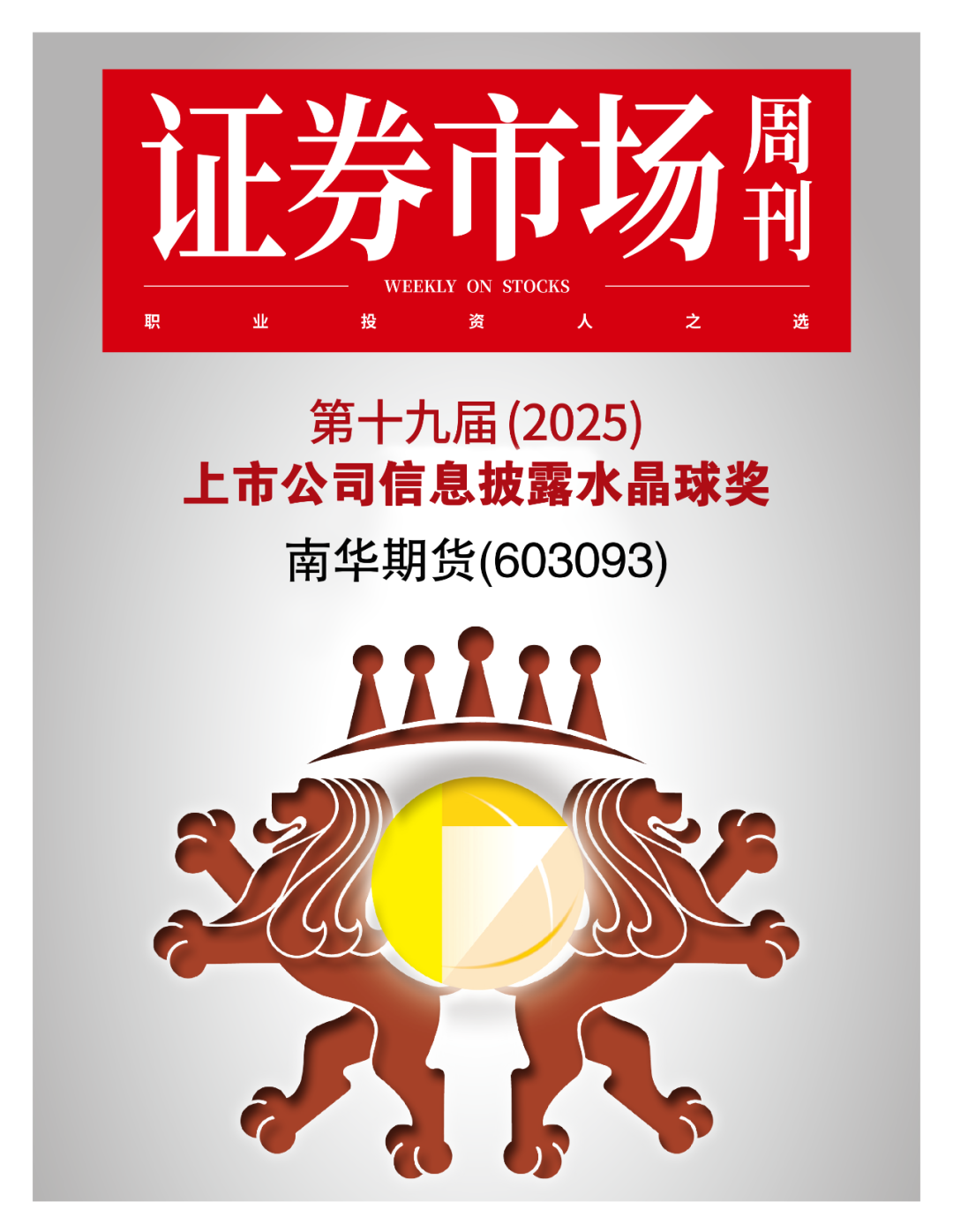 日前,《证券市场周刊》2025年度上市公司水晶球奖评选结果正式揭晓。南华期货股份有限公司凭借规范的公司治理、卓越的信息披露质量及突出的行业引领力,荣获“上市公司信息披露水晶球奖”,董事长、董事会秘书分别荣获 “上市公司最佳董事长”和“上市公司最佳董秘” 称号,彰显了资本市场对南华期货综合实力及核心管理团队专业能力的高度认可。