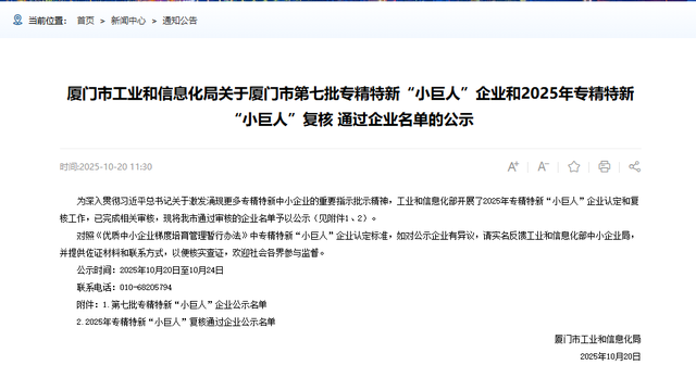 市工信局相关负责人表示,厦门正持续打造“专精特新”企业成长的沃土,通过完善梯度培育体系、强化政策激励、优化政务服务等措施,进一步激发企业创新活力和产业竞争力,让更多“小巨人”成长为支撑城市高质量发展的“大力量”。