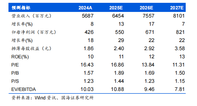 2025Q3单季度,公司实现营业收入15.14亿元,同比+4.77%,环比+0.01%;实现归母净利润为1.51亿元,同比+60.83%,环比13.17%。销售毛利率为21.97%,同比+1.37个pct,环比+0.32个pct;销售净利率为9.77%,同比+3.43个pct,环比+1.21个pct。