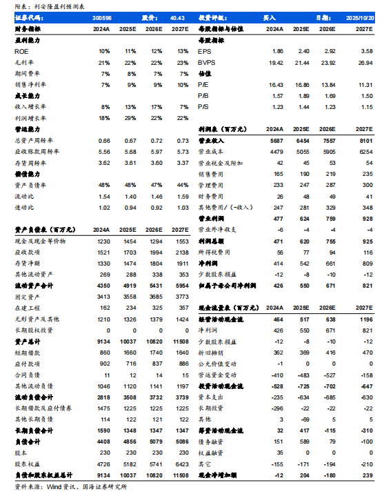 2025年10月20日,利安隆发布2025年三季报:2025年前三季度公司实现营业收入45.09亿元,同比+5.72%;实现归母净利润3.92亿元,同比+24.92%;扣非后归母净利润3.85亿元,同比+27.66%;经营活动现金流量净额2.82亿元,同比-1.84%。销售毛利率为21.72%,同比提升0.59个pct;销售净利率为8.47%,同比提升1.24个pct。
