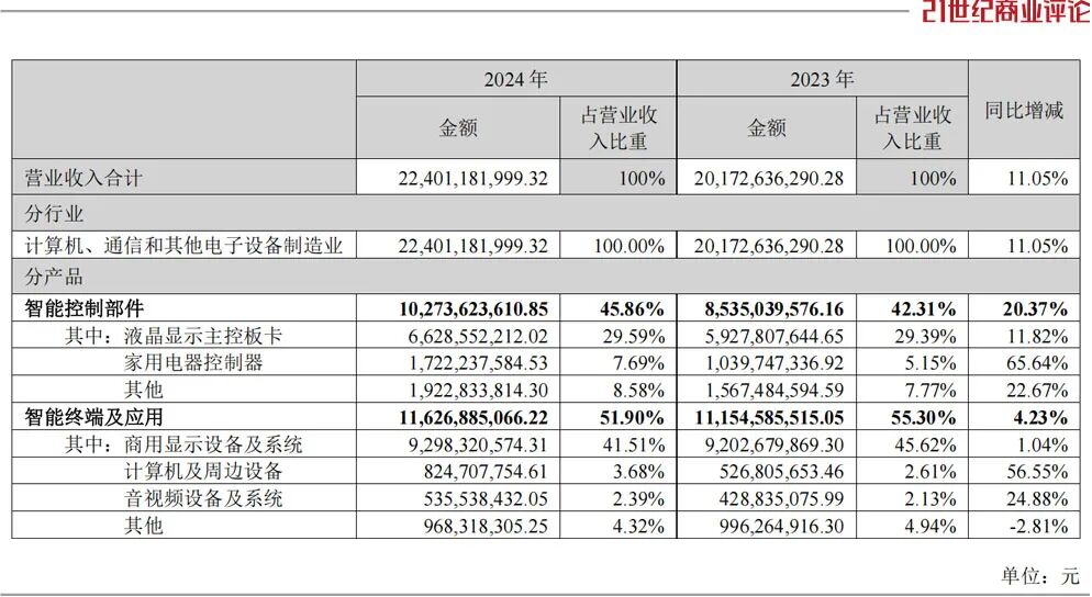 液晶显示主控板卡,仍是视源的基础业务,2024年出货量达6732万片,占全球总量的32.72%,营收达到66亿元。