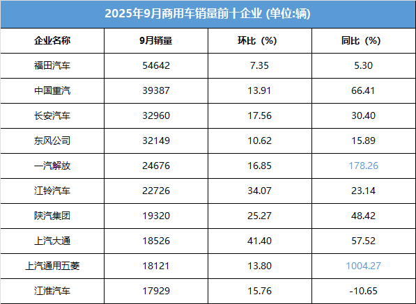 综上,2025年9月商用车销量榜不仅展现了市场的整体回暖趋势,更揭示了不同品牌和车型之间的激烈竞争态势。