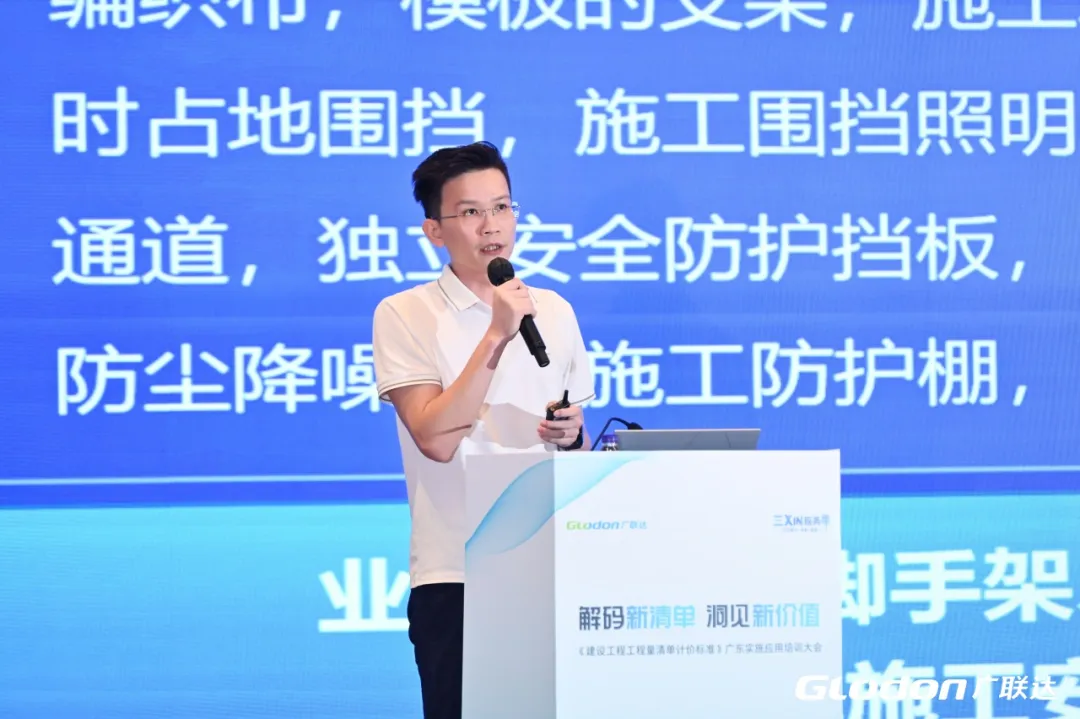 广联达广东解决方案专家、高级讲师翁宗本就《粤标定函〔2025〕22号文》及新清单标准下的广联达解决方案作了系统讲解。他结合广东省实际,详细解读了模板工程列入分部分项、绿色安措费拆分、甲供材计价、费率费用组成划分等关键调整,通过案例解析费用的计算方法,同时汇报了广联达工具数据一体化方案,成本测算核算一体化方案,通过广联达云计价GCCP7.0、AI智能提量、指标网数据支撑等一系列数字化工具,应对新清单列项、算量、组价、清标和成本管控中的实际应用。