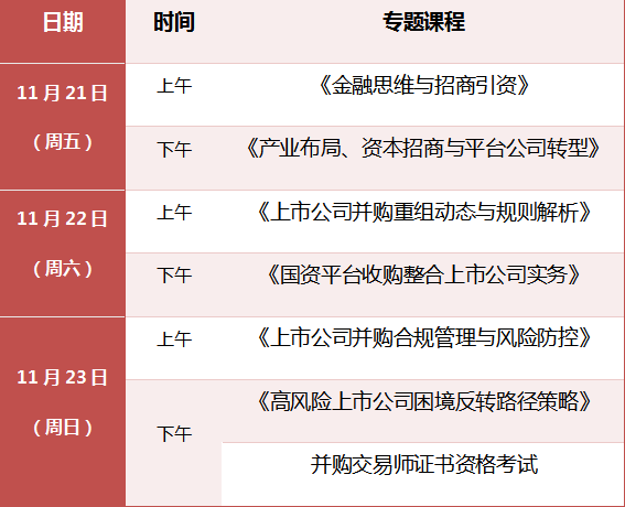 ★其他有志于从事上市公司投资并购重组与市值管理工作的人员。