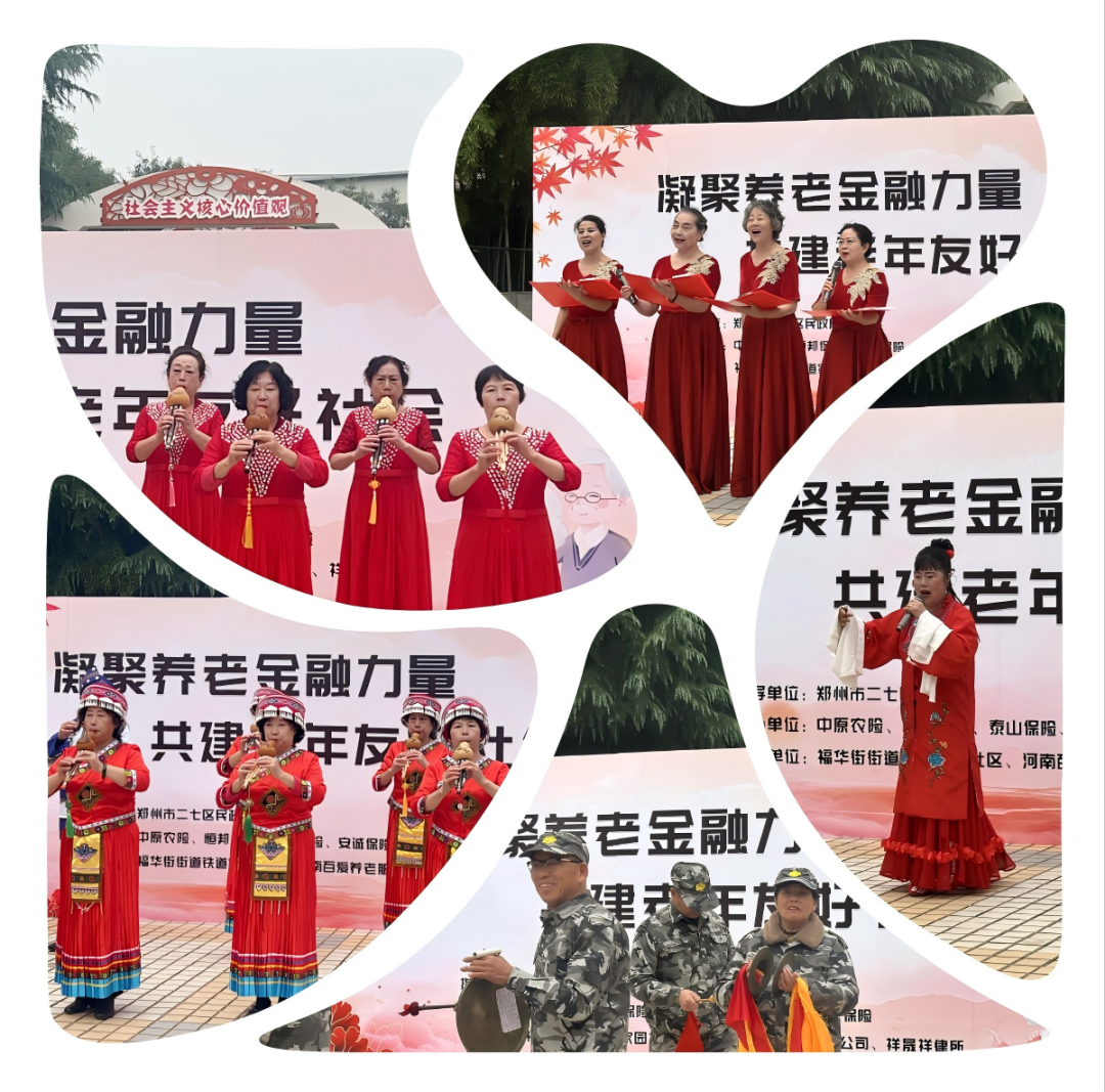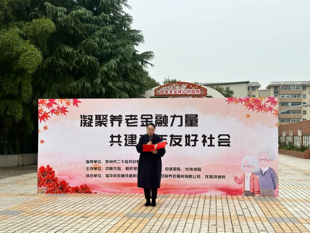 10月23日,在福华街街道铁道家园社区,中原农险、恒邦保险、泰山保险、安诚保险、华海保险携手郑州市二七区民政局、百爱养老服务机构、祥晟祥律所等单位共同举办了一场内容丰富、形式多样的敬老公益活动,将满满的金融关怀与温暖服务,送到了社区老人们身边。