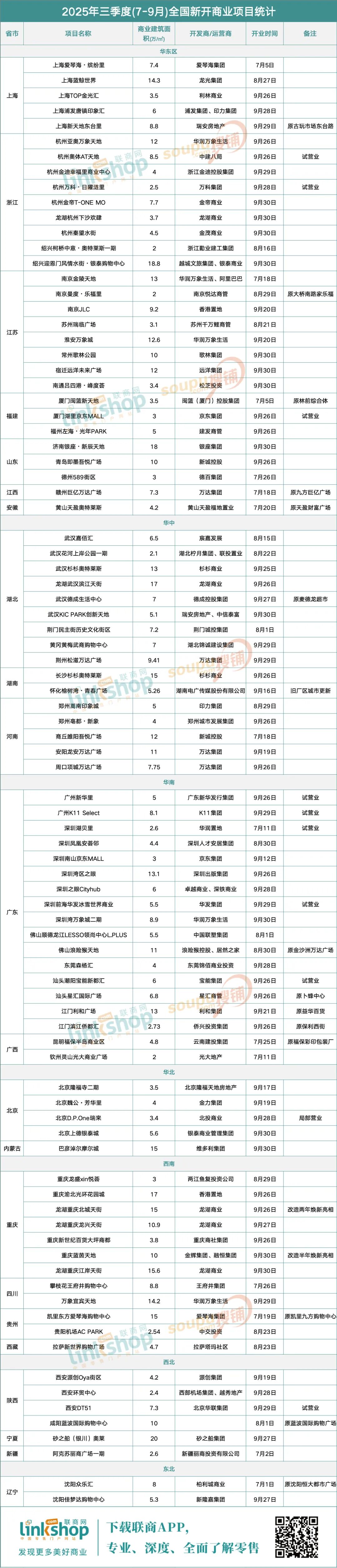 附:2025年三季度新开商业项目统计表
