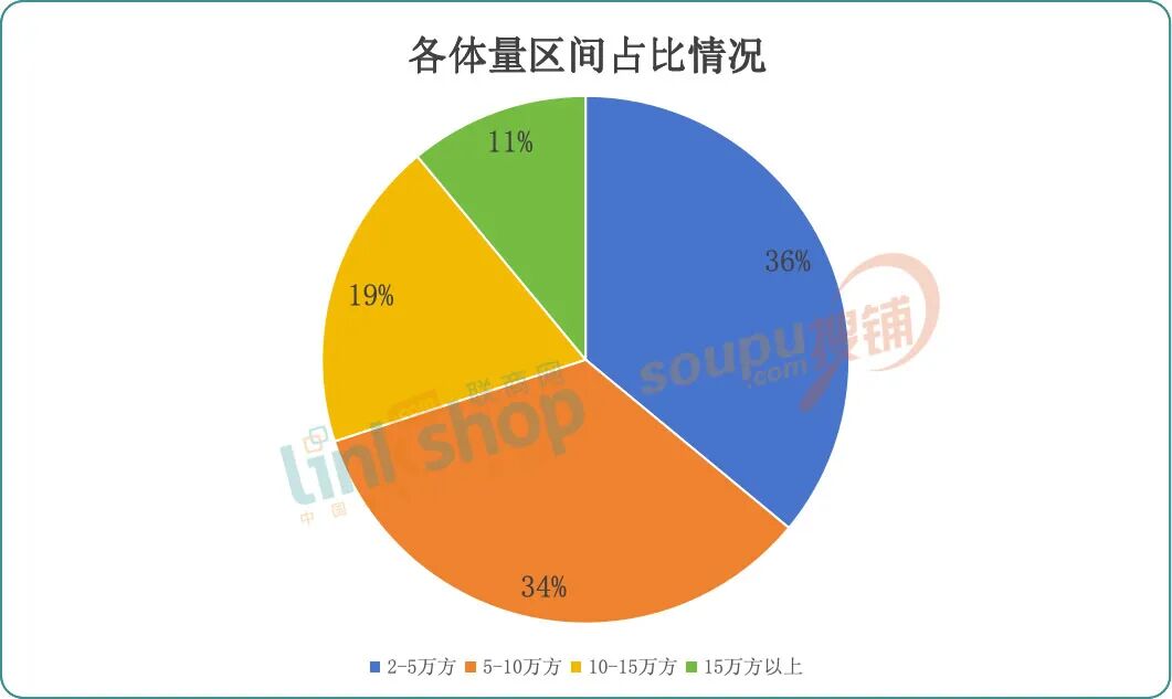 5-10万㎡的中型项目占比达34%,也是目前市场新开购物中心最主流的产品线。