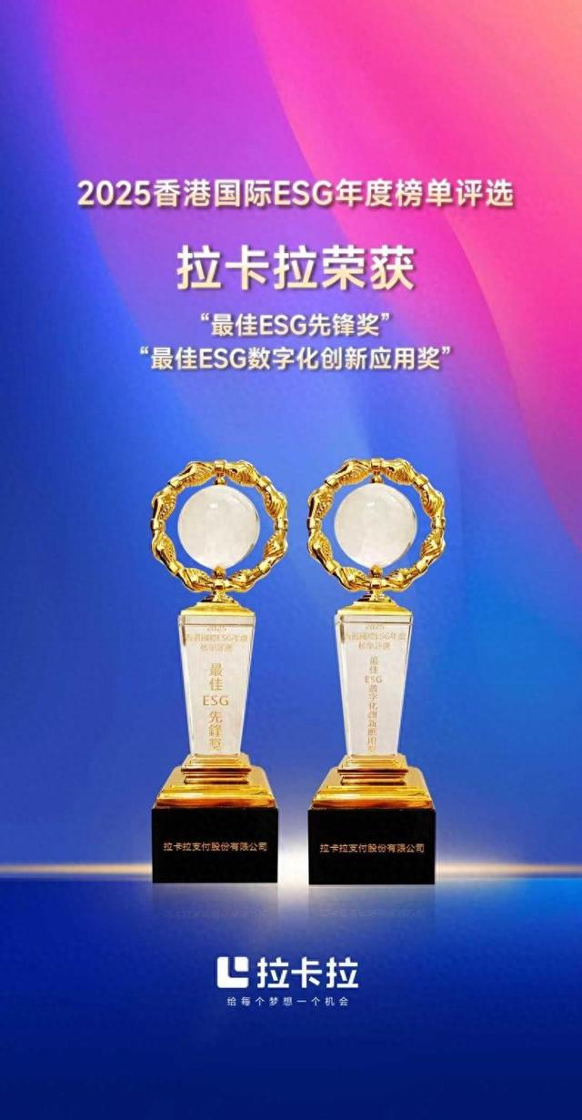 近日,“2025香港国际ESG论坛”在香港会议展览中心举办。论坛揭晓了2025香港国际ESG年度榜单,拉卡拉支付股份有限公司(300773.SZ 下称“拉卡拉”)凭借在提升支付便利性、AI创新应用实践、推动商户数智化跃迁等方面表现突出,荣获”最佳ESG先锋奖”“最佳ESG数字化创新应用奖”。