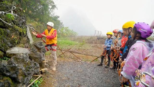 六年前,在外打工的梁方玲回到村里接受了攀岩安全员培训,从此成为“空中公园”飞拉达的一名安全员。石山众多,峭壁林立,曾是羊山村发展经济的拦路虎。2017年,当地党委政府因地制宜,大力发展山地运动,建成了中国首个攀岩特色体育小镇,找到一条既能发展经济,又能保护生态环境的新路子。许多村民像梁方玲一样找到了就业机会。