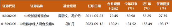 2023年9月12日中欧数字经济成立,并由冯炉丹单独管理,2年多的任职回报高达193.17%。