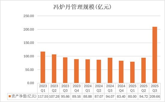 2025年三季度,冯炉丹总管理规模突破200亿元,环比翻倍增长。