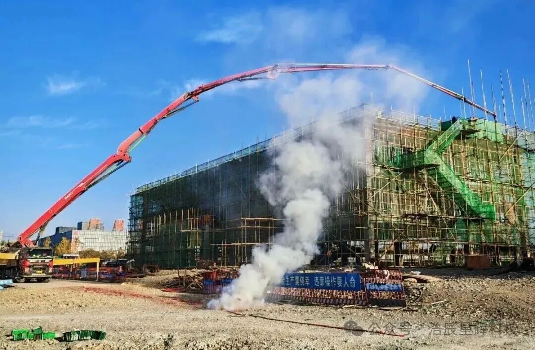 截至 10 月 20 日,哈密浩辰星辉科技技术有限公司年产 8 吉瓦固态电池项目建设中各单体工程施工高效衔接,整体进度与年度计划高度匹配。作为项目重要配套设施的办公楼今日完成水泥浇筑封顶,这一节点的达成标志着该单体建筑主体结构全面落成。回溯施工历程,从 1 层混凝土浇灌完成到如今顺利封顶,办公楼建设的快速推进,正是项目 “土建 + 设备安装” 工序穿插作业模式优势的生动体现。