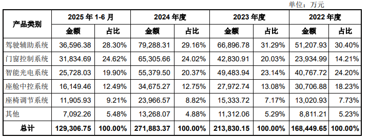 报告期内,公司主营业务收入按产品类别分类的构成情况如下: