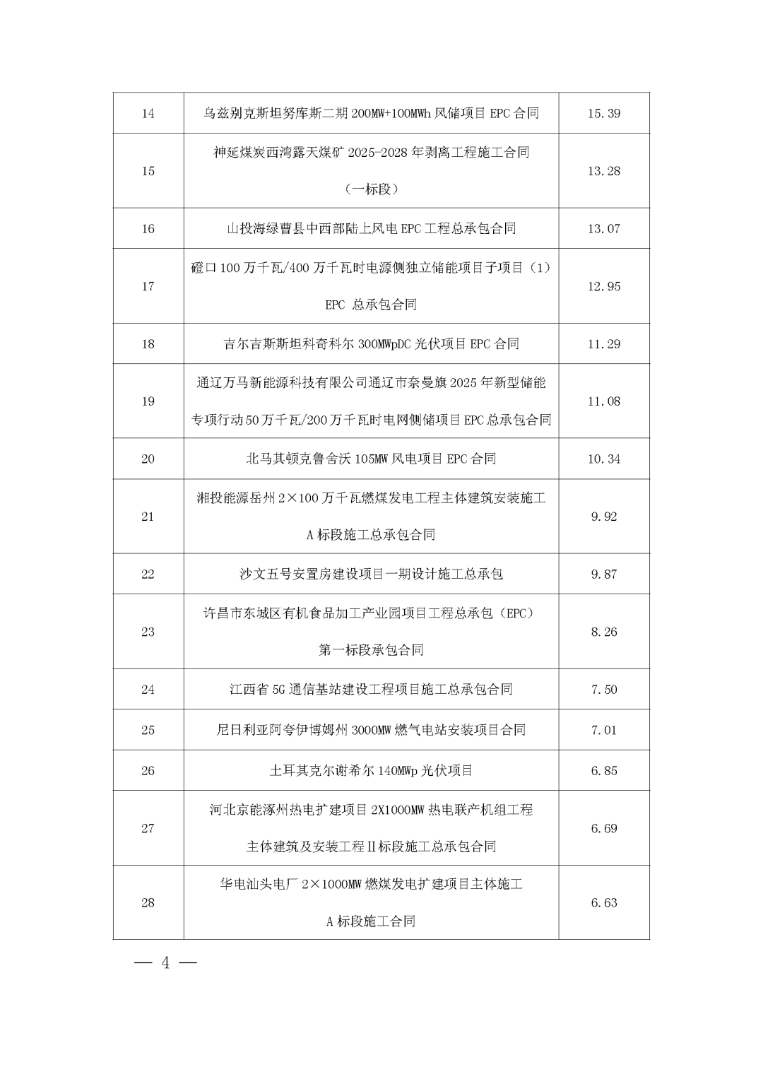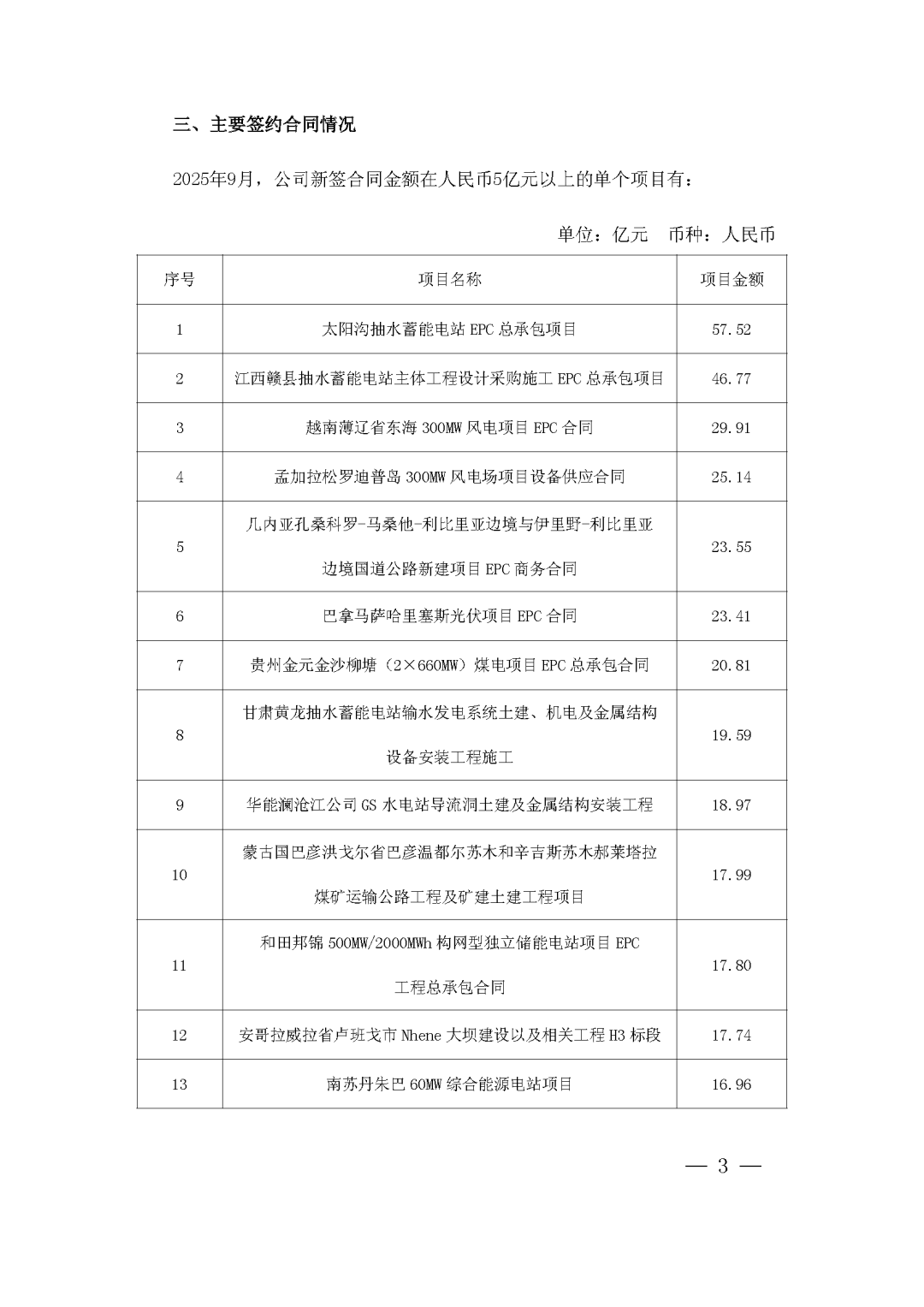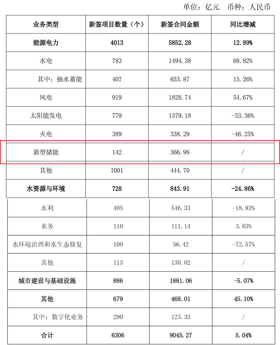 另外,在单个项目合同金额超过5亿元的新增项目中,也包括多个抽水蓄能、新型储能项目,具体如下:
