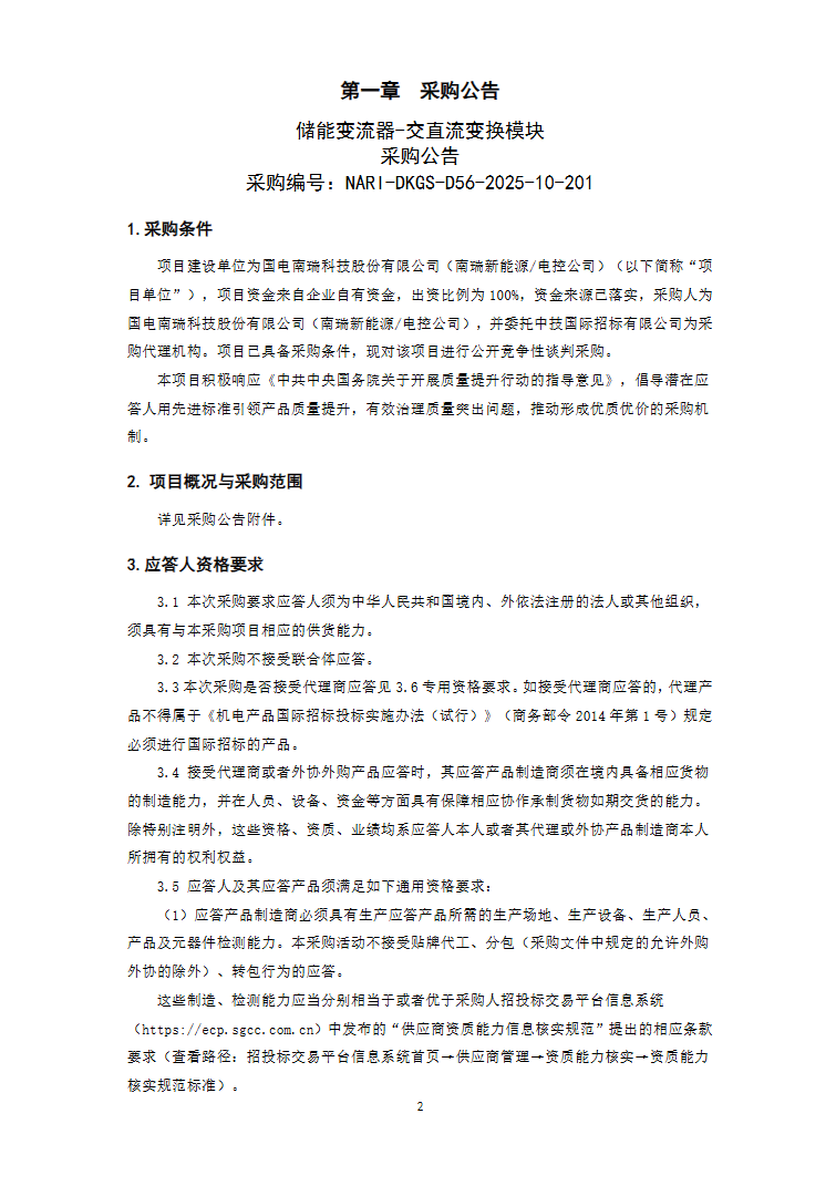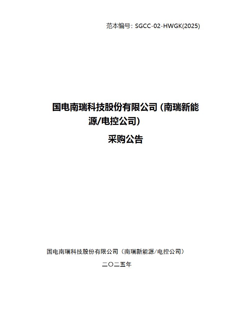 储能与电力市场获悉,10月21日,国电南瑞科技股份有限公司(南瑞新能源/电控公司)采购公告发布。