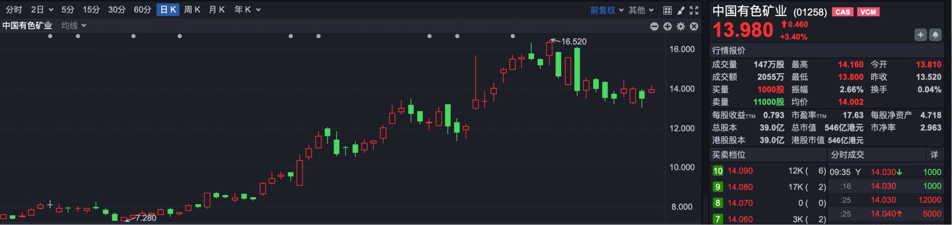 此外,铜板块涨幅居前,中国有色矿业(01258.HK)涨超4%,五矿资源(01208.HK)、江西铜业股份(00358.HK)、中国中冶(01618.HK)涨超3%。
