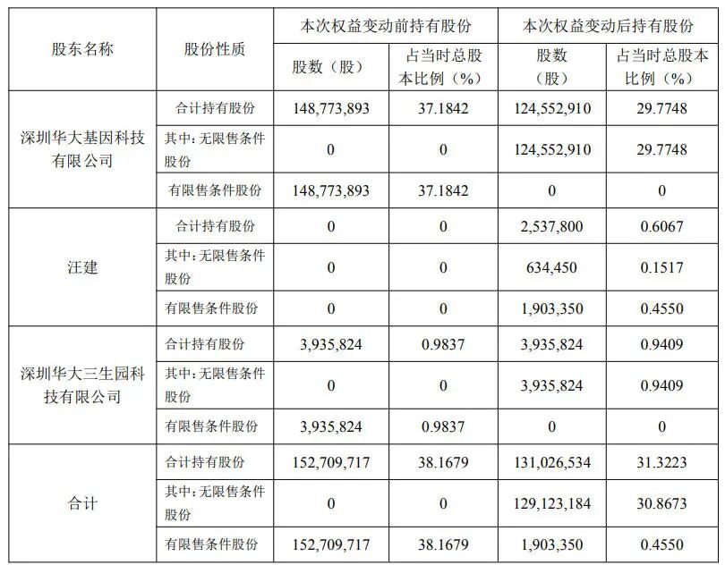 公告显示,此次减持目的则为华大控股自身资金需求(主要用于支持新质生产力方向的前沿科技孵化)。而根据华大基因2025年3月18日公告,减持主要是华大控股上层股权结构调整所产生的资金需求,即收购华大控股自然人股东王俊个人股份的资金需求。华大基因指出,实际该部分减持金额主要用于了汪建间接增持华大基因的股份。