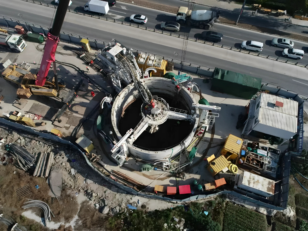 迎宾水厂进厂原水管工程YB1.1标11号、14号工作井紧邻运行中的城市主干道路,是全线关键节点。为了降低工作井建设对周边环境的影响,隧道股份上海路桥项目团队大胆创新,将传统地墙工艺变更为SAM工艺,于国内首次将SAM竖井应用于盾构始发井,大幅缩短工期、减少影响面。
