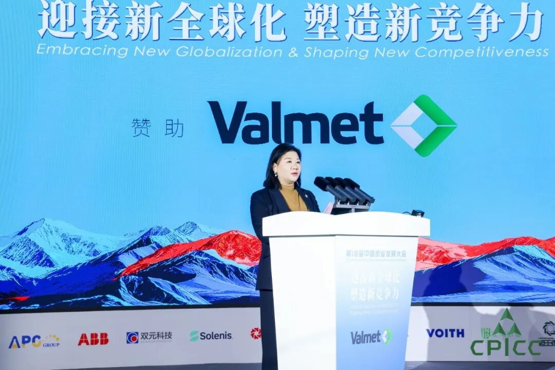 纸业商会常务会长、山东太阳纸业股份有限公司董事长李娜在大会开幕式上代表主办方致辞,提出在传统全球化格局回流、新型全球化多变复杂的背景下,行业需应对经济转型期的结构性“内卷”,回归本质,塑造应对不确定性的核心竞争力。维美德集团执行副总裁兼中国区主席朱向东在开幕致辞中以全球造纸装备领先企业的视角,阐述了维美德持续“变革”引导行业技术发展和服务中国客户的成绩和未来规划。