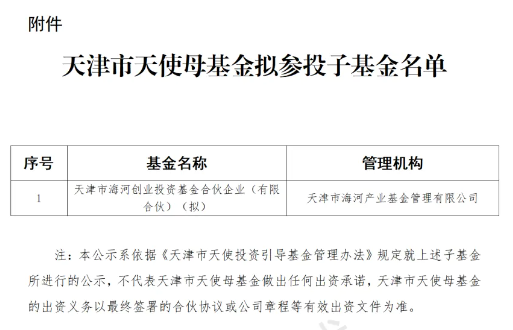 11天津:天津市天使母基金第八批拟参投子基金公示
