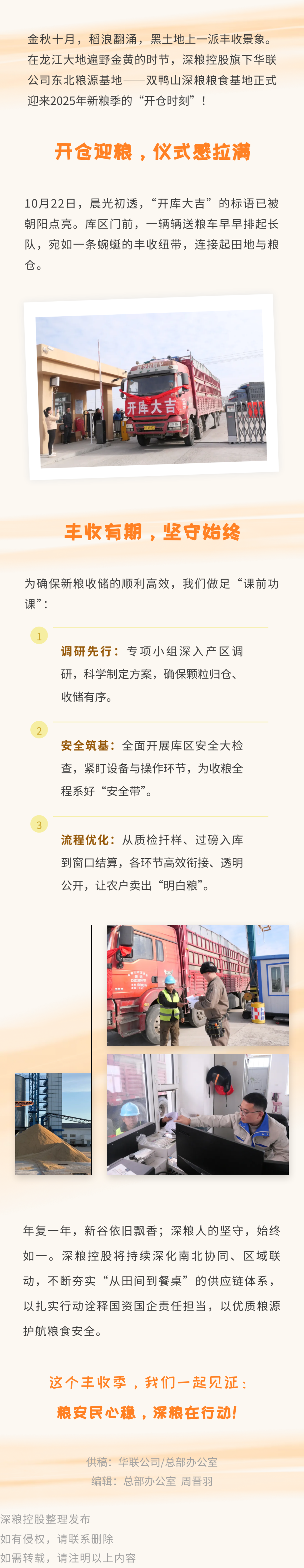 南北同奋进,协力保仓盈|深粮控股东北粮源基地开仓纳新粮