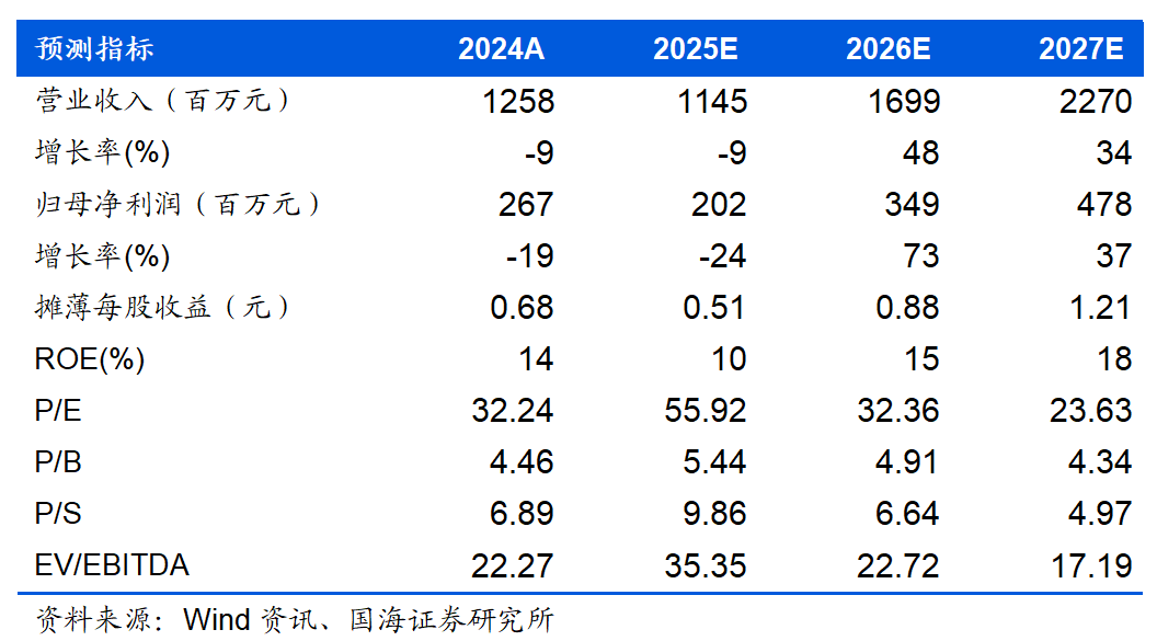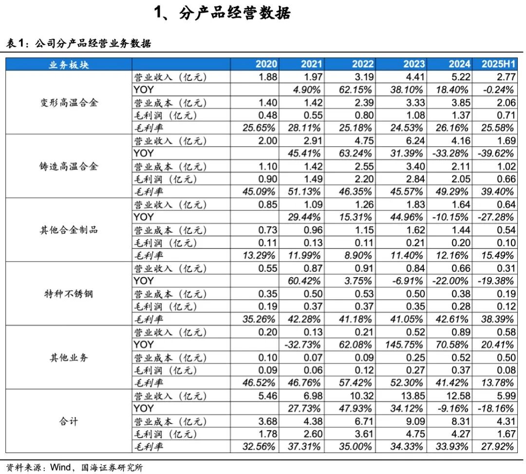 公司是国内少数能同时批量化生产变形高温合金、铸造高温合金(母合金、精密铸件)产品的企业之一,未来随着我国航空航天等领域需求持续增长及国产化趋势加速,高温合金市场面临着较大的需求增长空间和进口替代空间。我们预计公司2025-2027年营业收入分别为11.45、16.99、22.70亿元,归母净利润分别2.02、3.49、4.78亿元,对应的PE分别为56、32和24倍,维持“增持”评级。