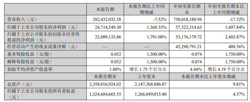 归属于上市公司股东的净利润5752.23万元,同比增长1697.84%。归属于上市公司股东的扣除非经常性损益的净利润5317.62万元,同比增长2403.87%。