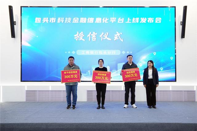 当日,包头市科技局、人民银行包头分行与包头市安恒技术有限公司签署共建协议;工商银行、中国银行、交通银行、民生银行4家银行与包头市安恒技术有限公司签署战略合作协议,现场为12家科技型企业授信7640万元。