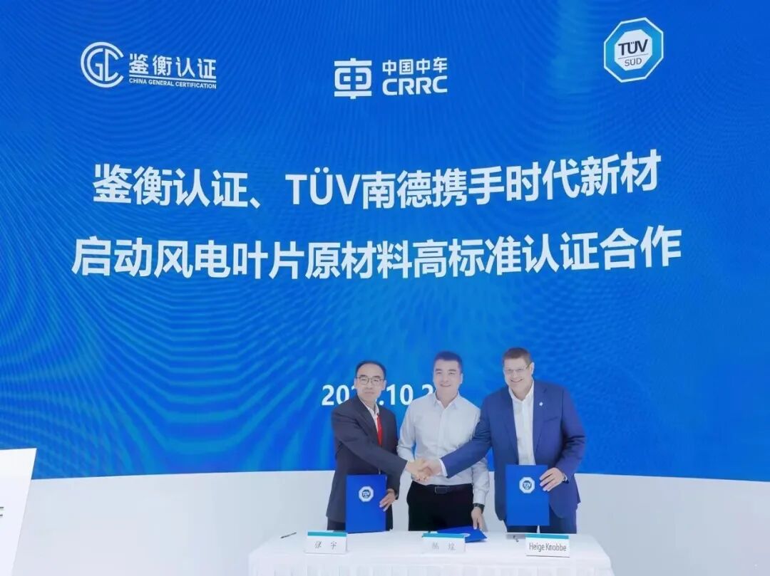 1、北京鉴衡认证中心、TÜV南德携手时代新材启动风电长柔叶片高标准材料认证合作