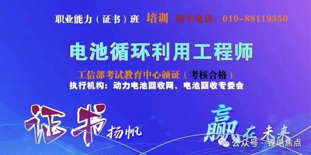 本站记者从动力电池回收网、中国电子节能技术协会电池回收利用委员会获悉,由工信部考试教育中心推出的《电池循环利用工程师》职业能力证书培训即将于今年10月开始招生培训,通过考核是学员将取得《电池循环利用工程师》职业能力等级评价证书。