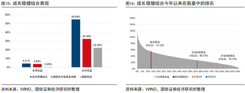 成长稳健组合:本周超额收益0.49%,本年超额收益22.26%。