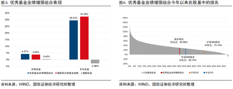 优秀基金业绩增强组合:本周超额收益0.45%,本年超额收益-2.86%。