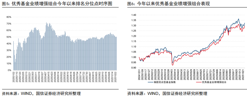本周(2025.10.20-2025.10.24),优秀基金业绩增强组合绝对收益4.27%,相对偏股混合型基金指数超额收益0.45%。