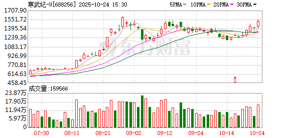 拉长时间来看,年内寒武纪股价涨幅已经超过130%。8月份,寒武纪曾创下1595.88元/股的历史高位,随即回撤幅度超过了两成。然而在这一轮的科技主线中,以该股为代表的一众芯片股韧性凸显,在盘整数周后,寒武纪时隔近两个月再度向历史新高发起冲击。