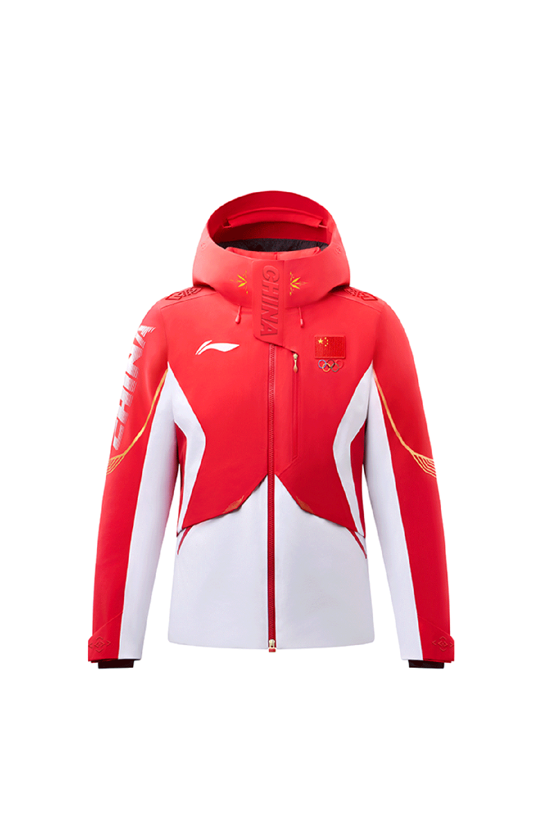 领奖服以“中国红”与“雪山白”为主色调,“中国红”在正面勾勒出象征着五角星的线条,“雪山白”则融入了东方审美里的留白意境。同时,在肩部、袖口等部位采用了传统吉祥寓意纹样——“双胜纹”,该纹样由两个菱形交叠穿插而成,蕴含着胜利、祥瑞等美好寓意。在材料选择上,则应用了“航天动态保暖科技”,实现了“锁温、透湿”双向突破。据介绍,李宁品牌与国家航天局新闻宣传中心共同携手,促进航天科技在专业运动领域的应用转化,通过“航天技术创新应用实验室”,共创推出动态保暖科技平台,该平台实现“航天锁温棉”、“玄武岩远红外”科技应用转化,并首次使用在中国体育代表团领奖服上,以期中国健儿在登上米兰冬奥会领奖台时,能将这份文化自信和科技创新呈现在世界面前。
