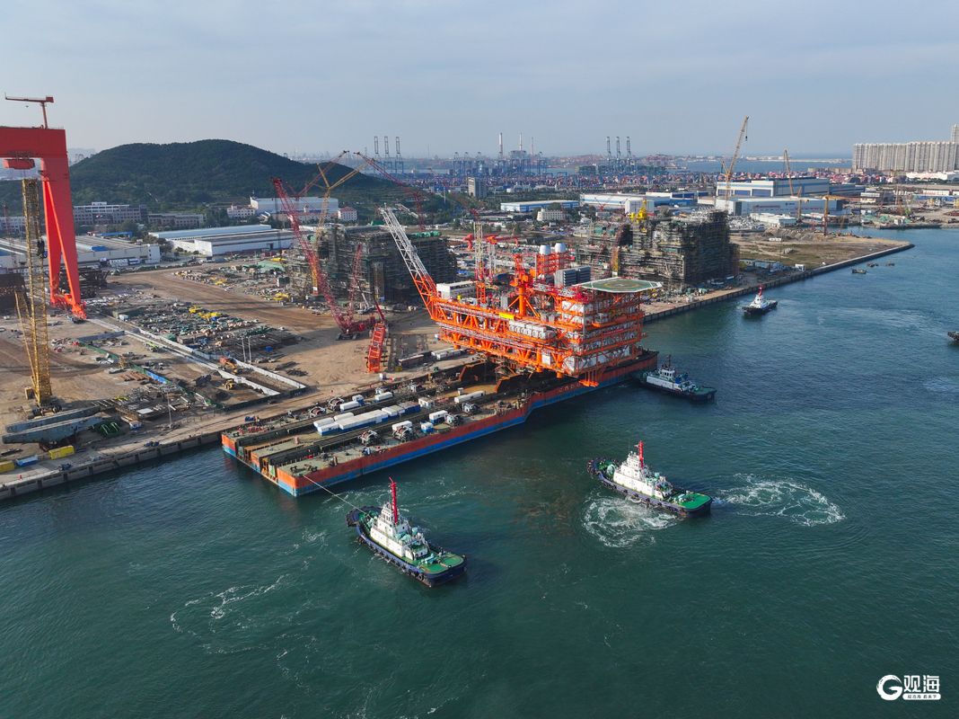青岛日报社/观海新闻10月25日讯 10月24日,装载平台的“海洋石油228”驳船缓缓驶离海油工程青岛国际化高端装备制造基地码头,标志着涠洲11-4 CEPD平台陆地工程全部完工,进入海上安装阶段。该平台实现多项技术突破,创造了北部湾区域海上油气平台尺寸和重量新纪录。