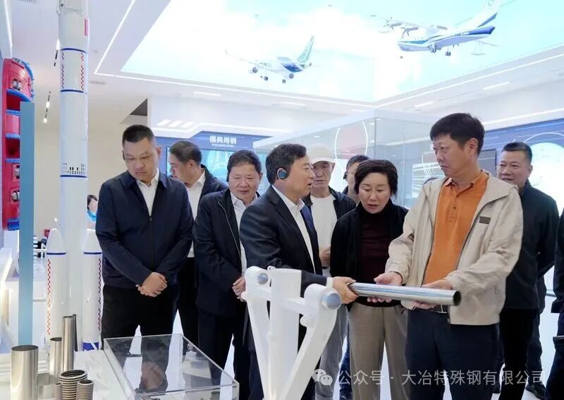 在科技展厅,钱刚向江阴市企业家们详细介绍了大冶特钢“两高一特”产品在航空航天等国家重大工程中的应用情况。他说,大冶特钢“两高一特”产品通过了普惠、赛峰等国内外多家知名企业认证,生产的高温合金钢、高强钢,特种不锈钢处于行业领先地位,其中高强钢主要应用在飞机起落架,高温合金主要应用于航空、航天发动机领域。