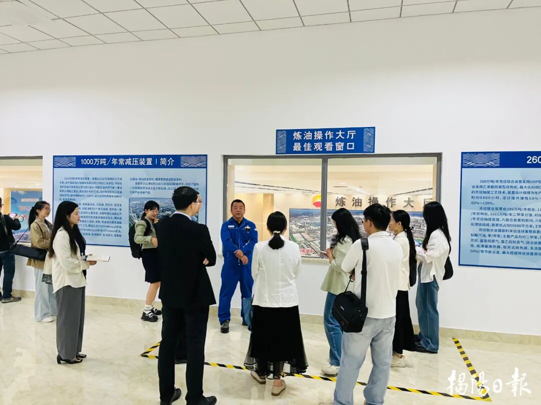 23日,采风首站走进揭阳大南海石化工业区。采风团成员详细了解广东石化炼化一体化项目建设与运营进展;随后,系统了解大南海石化工业区的发展规划与产业布局。产业发展离不开人才支撑。在广东工业大学揭阳校区化工与先进材料系,采风团成员通过观摩实训装置、听取专业讲解,深入了解绿色石化产业在产教融合与产学合作中的人才培养新模式。