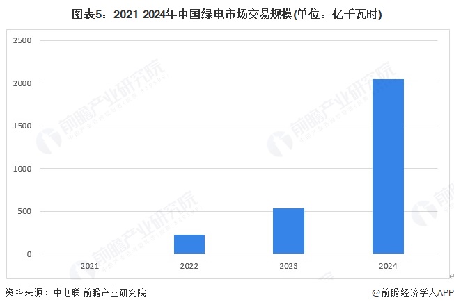 2024年,我国绿电交易约2048亿千瓦时,同比增长280.9%,占全国市场交易量比重约4.5%,预计2025年全年绿电交易规模超5000亿千瓦时。