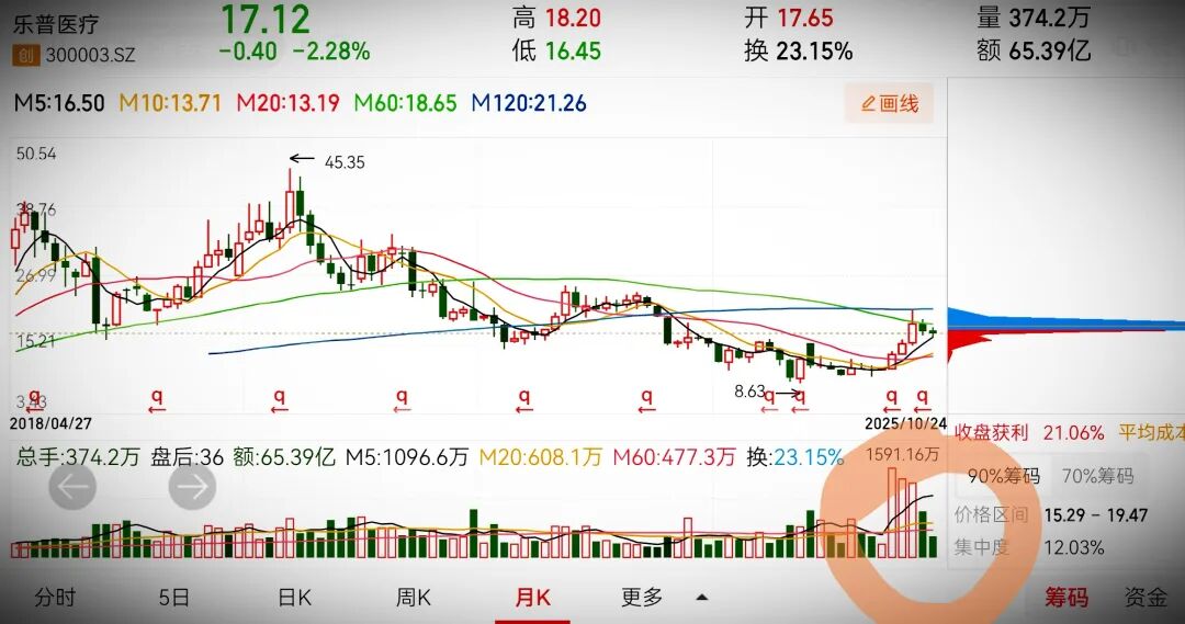 月K线图来看,股价经历连续倍量拉升后,近两个月展开调整并回踩5月均线,这是极为健康的走势结构。成交量的密集放量表明有资金主动入场布局,毕竟股价从两年前的45元回落至当前十几元区间,下跌空间充分,尽管上方存在套牢筹码,但从筹码分布图可见当前筹码较为集中,压力会随均线系统与均量线系统同步形成多头排列而逐步化解,这里运气都不会太差。