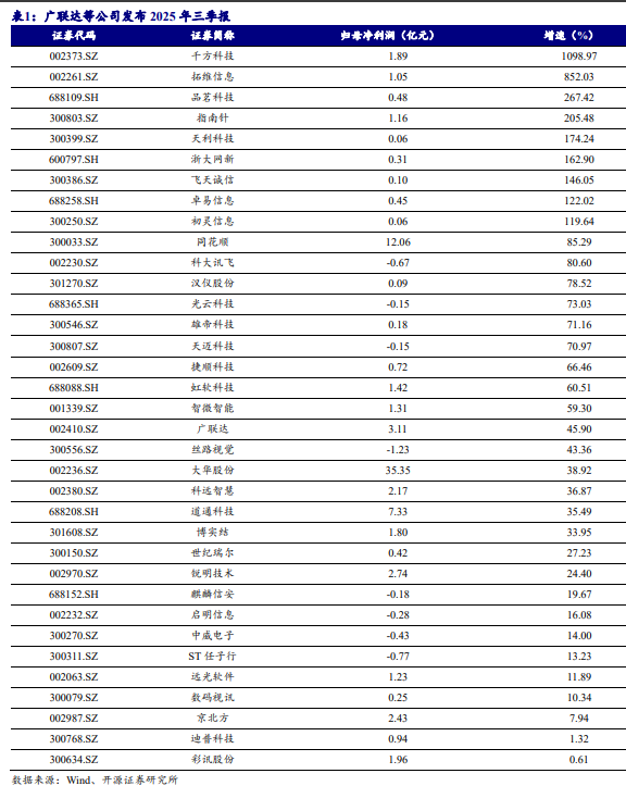 1.1、业绩报告:广联达等公司发布2025年三季报