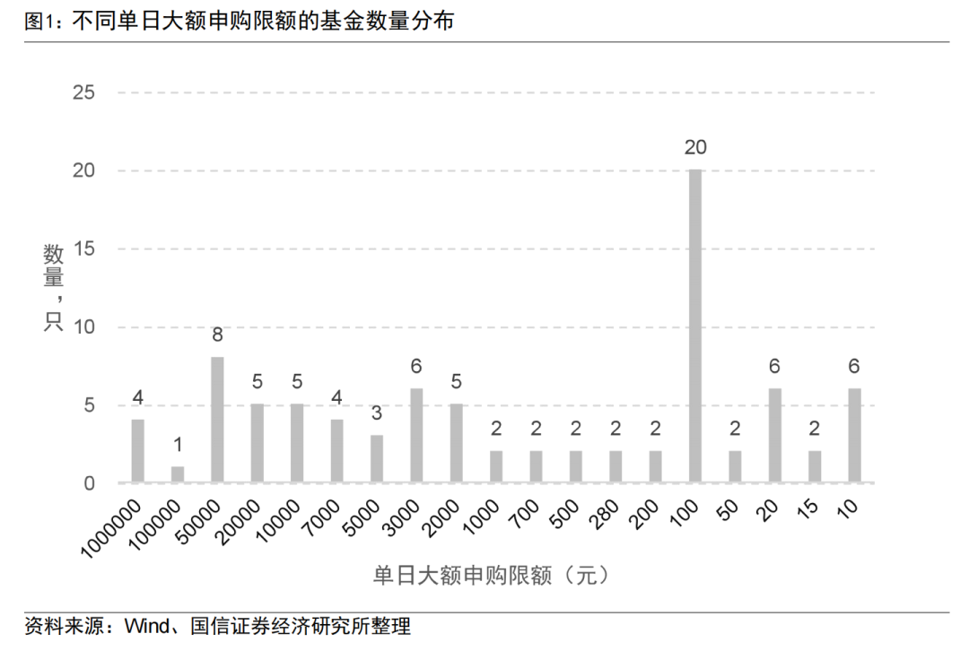 图1我们统计了跟踪标普500或纳指相关指数的场外QDII基金的限购情况。截至2025年10月24日,仅有大成标普500等权重美元A/C这一只基金未暂停大额申购,其余基金均已暂停申购或暂停大额申购。具体限购金额情况如下:可以看到超过73%的基金限额在1万元以下,其中50%基金的金额不超过1000元。