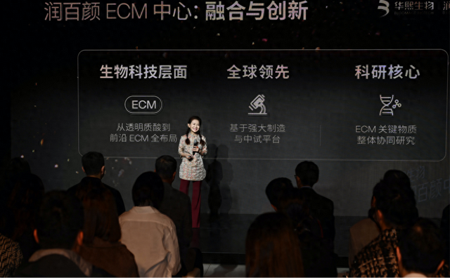 华熙生物董事长赵燕在会上指出,场馆如同“社会ECM”,是文明交流与创新的物理载体。全球知名科学家石海宁则从科学角度解读ECM价值,强调透明质酸在其中的信号引导作用,为润百颜的科研转化提供理论支撑。
