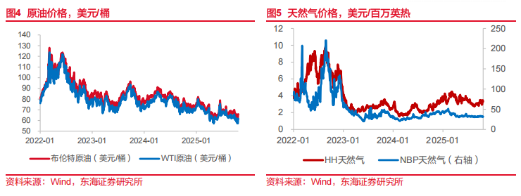 油价判断:OPEC+持续增产,巴以冲突趋缓,短期内地缘政治因素影响边际减弱,中美关税贸易战再起,预计年内布伦特原油仍将在60~90美元/桶区间震荡运行,短期内需关注降息预期、特朗普政府突发政策变动引起的油价波动风险。
