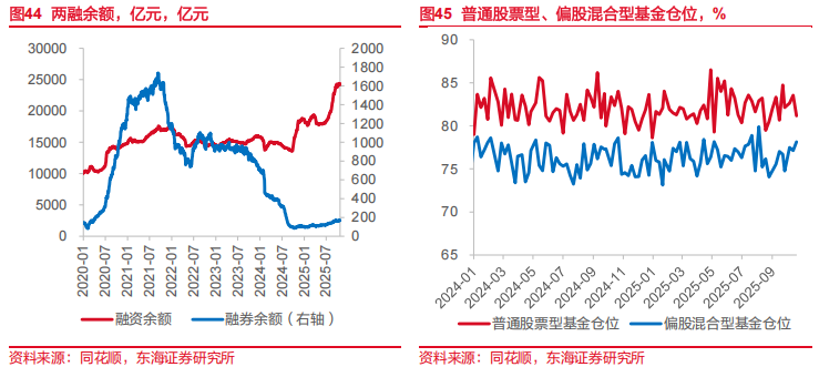 偏股混合型基金仓位环比上升。10月24日当周,据同花顺数据,普通股票型、偏股混合型基金平均仓位分别为81.16%、78.14%,分别较前值下降2.39%和上升1.01%。