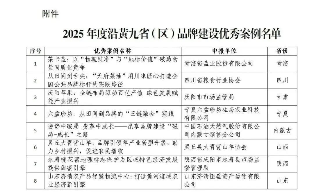 10月24日,“黄河聚动能 品牌赢未来”2025黄河品牌大会在济南召开,会上,2025年“黄河名品”公共品牌名单正式公布,公司所产茶卡湖盐凭借“茶卡”品牌“盐系天成,味由心生”的强劲实力成功入选,同时,青海盐业公司以《茶卡盐:以“物理纯净”与“地标价值”破局食盐同质化竞争》案例获评2025年度品牌建设优秀案例,充分彰显公司品牌建设的创新实践与卓越成效。