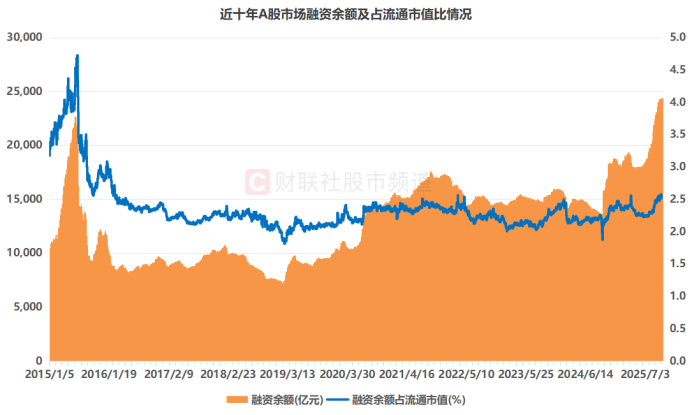 注:近十年A股市场融资余额及占流通市值比情况(截至10月24日数据)