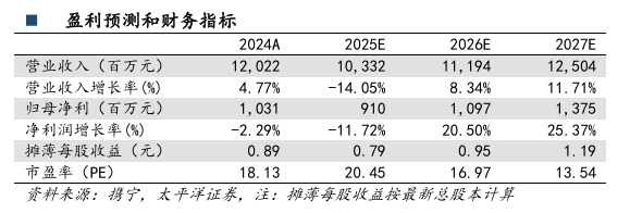 2025年10月21日,公司发布2025年三季报,2025年Q1-3公司实现营业收入77.64亿元(YoY-16.43%),归母净利润7.00亿元(YoY-19.48%),扣非净利润6.47亿元(YoY-22.14%)。