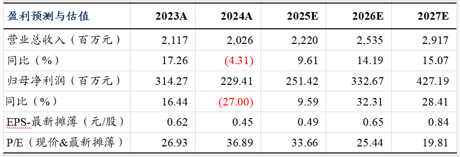 考虑到公司产能扩张节奏与特殊行业回款,出于谨慎性考虑,我们调整公司2025-2027年归母净利润预测为2.5(原值2.8)/3.3(原值3.5)/4.3(维持)亿元,当前市值对应PE分别为34/25/20X,维持“增持”评级。